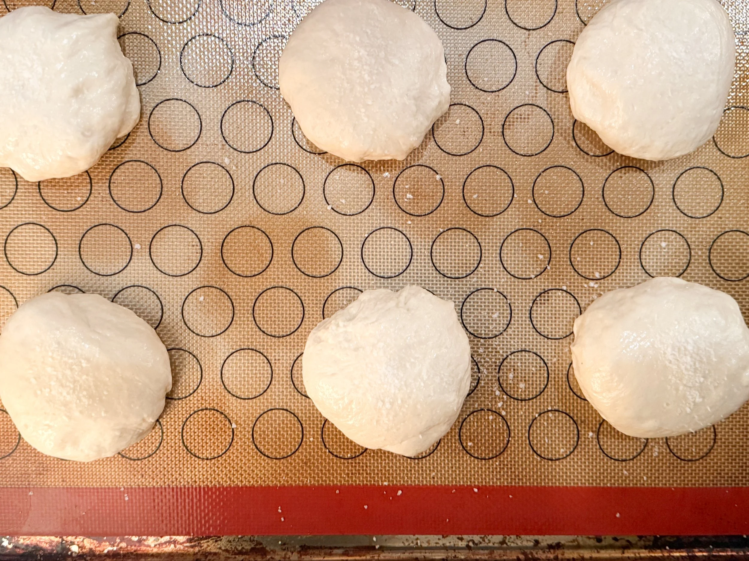 Divide into 12 equal pieces and shape each into a tight ball with a smooth top. (you can sprinkle some olive oil on top to help with sticking)