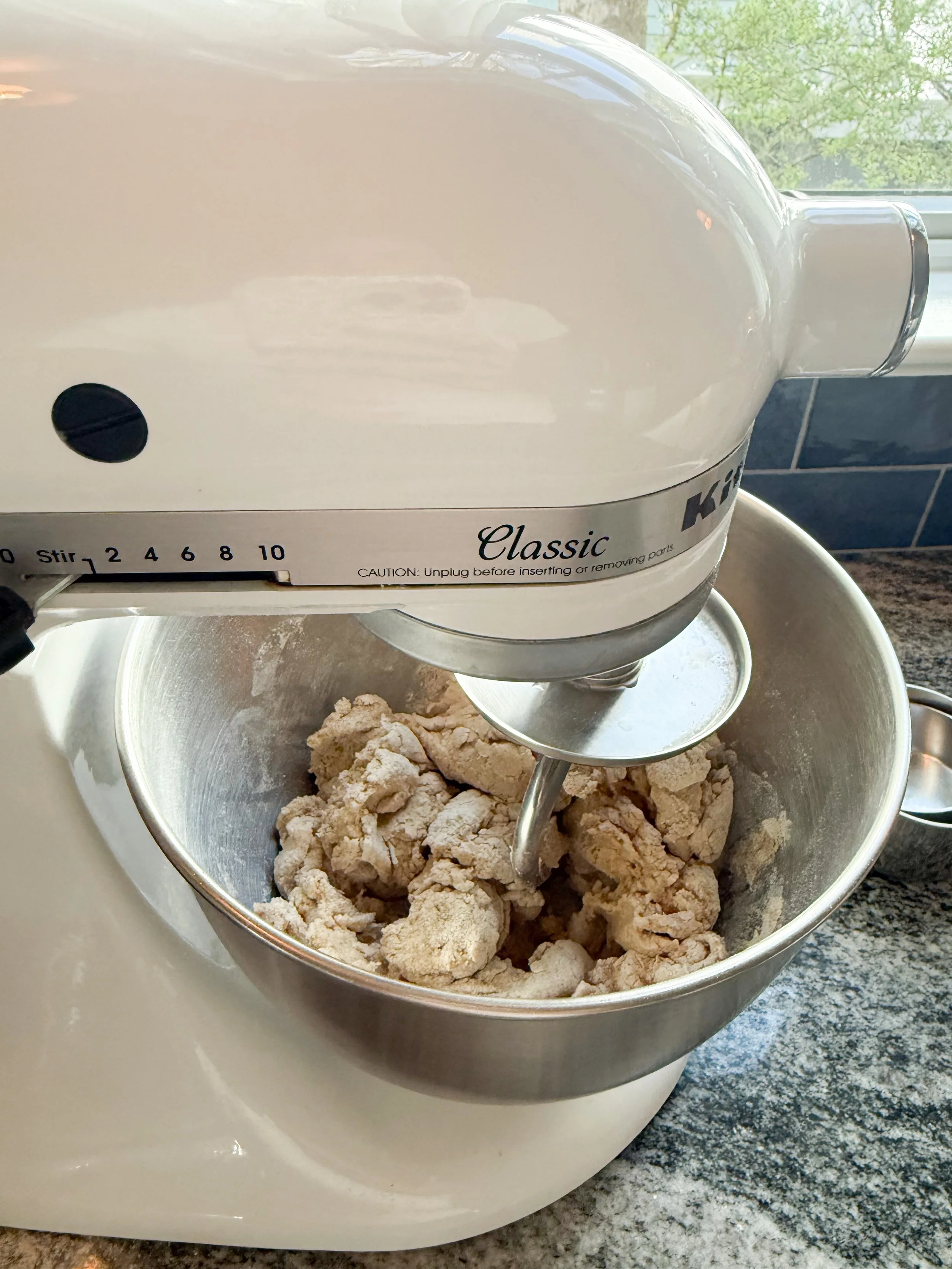 Mix flour and 1¼ cups warm water until no dry flour remains. Cover and rest 30–45 minutes. This step is key for stretchy, non-tearing dough with fresh-milled flour.